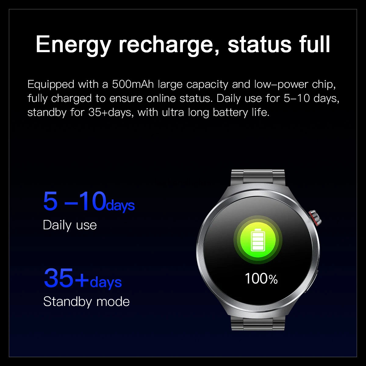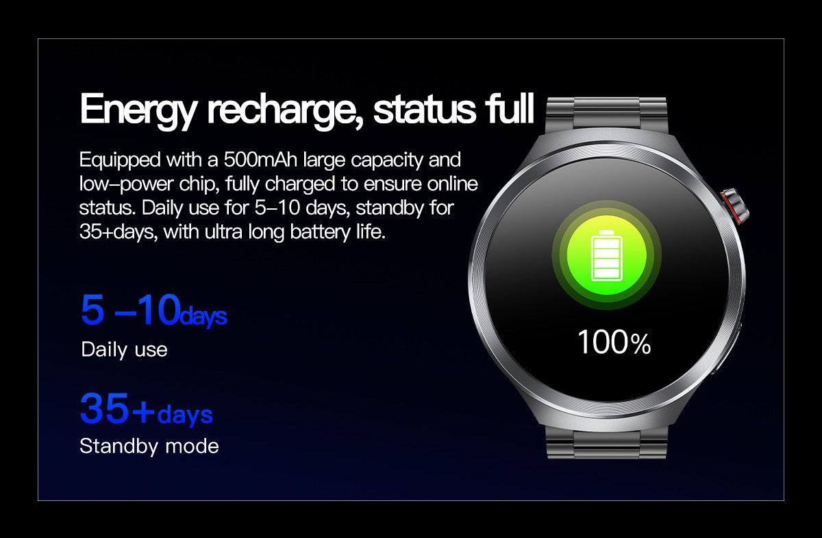 🔋Long Lasting Battery Life 10 days Daily Use and 35 Days Standby Time depending
