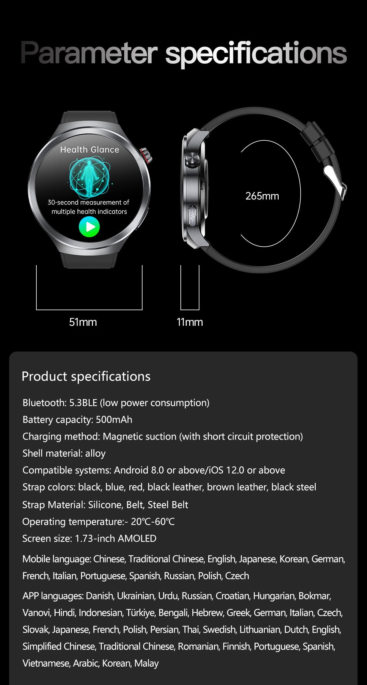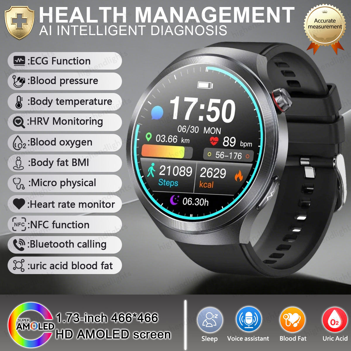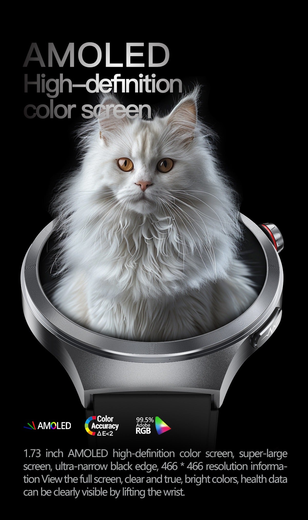 1.73 Inch Super-large AMOLED Screen Health Smartwatch: