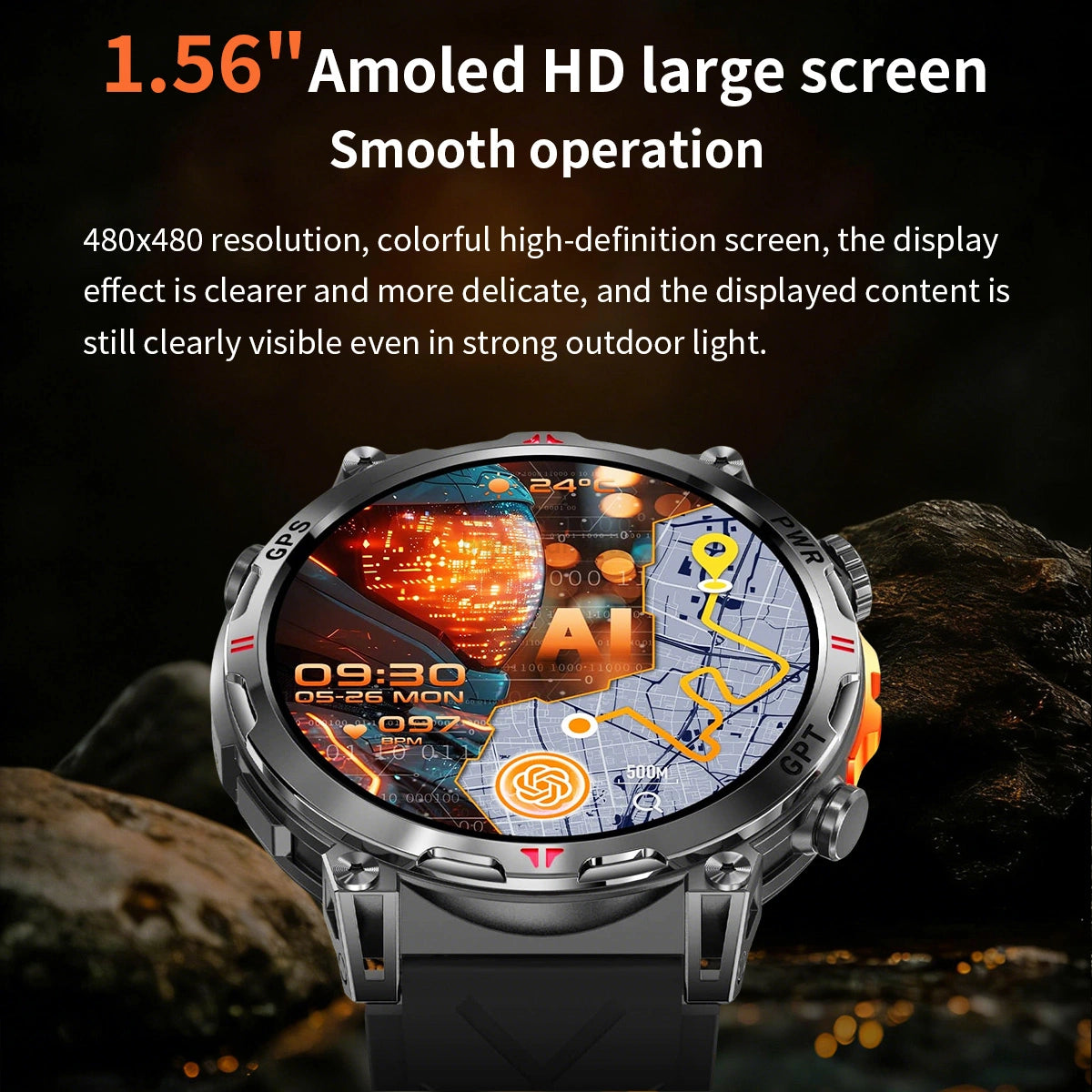 Enjoy brilliant visuals on the 1.56-inch AMOLED HD display,