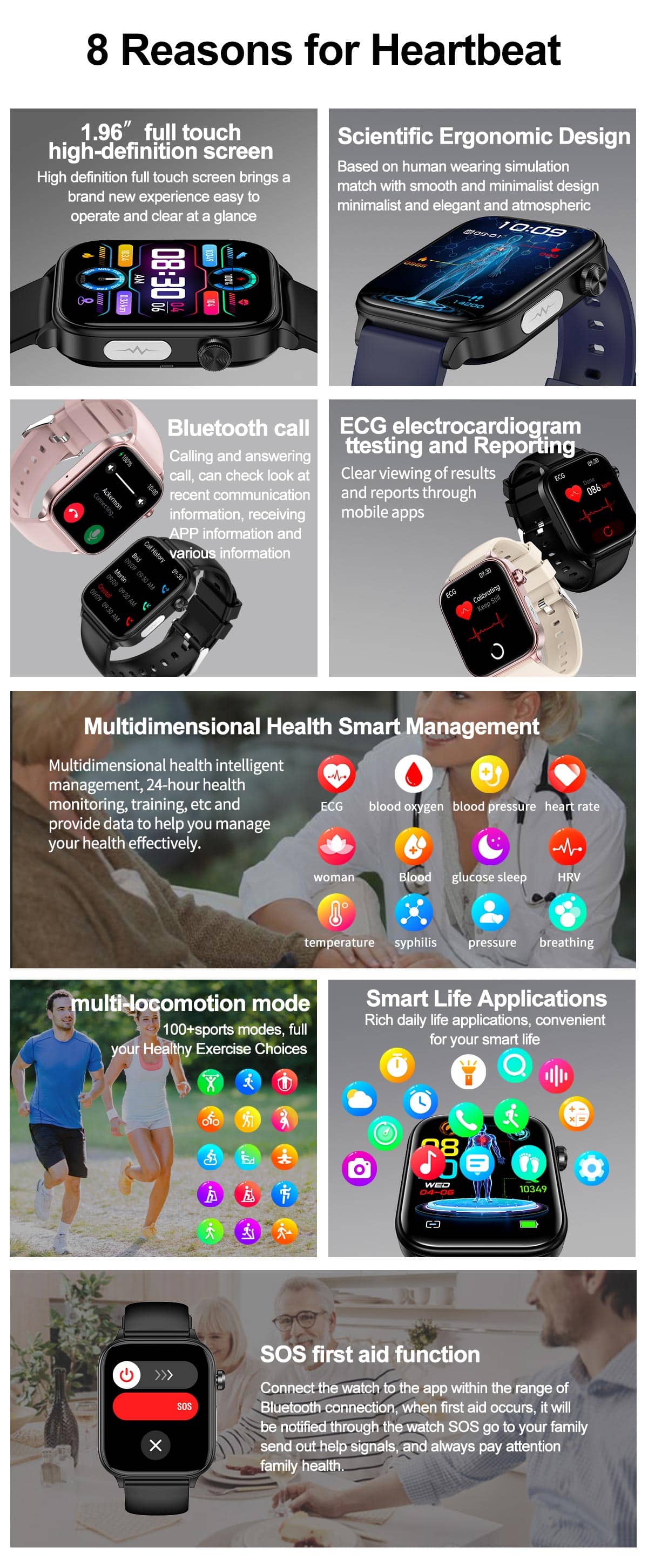 Monitor blood sugar, blood pressure, blood oxygen, body temperature, and heart