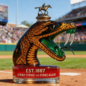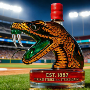 This Cobra whiskey bottle (EST. 1887 + “STRIKE!” battle cry) is the ultimate fan flex.