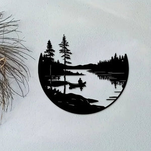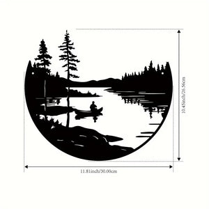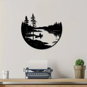 Bohemian-Inspired Metal Wall Art: Scenic Lake & Mountain Silhouette Round Sculpture for Elegant Home and Patio Decor