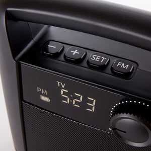 Cordless Rechargeable Wireless TV Speaker with FM Radio & Digital Clock