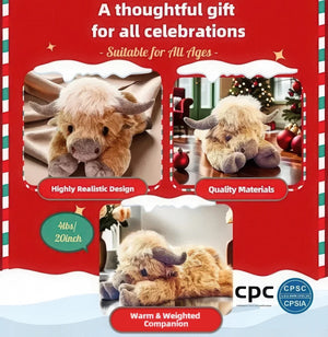 Whether you’re easing tension or drifting off to sleep, our Highland Plush Cow brings a soft, soothing presence with every cuddle—no heating elements needed, just natural coziness.