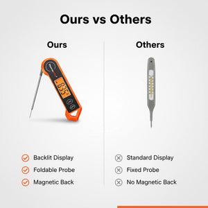Digital Food Thermometer - Backlit Display - Foldable Probe