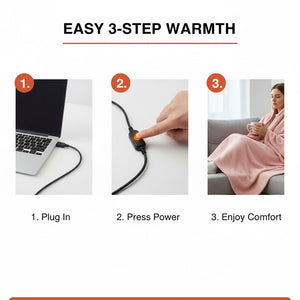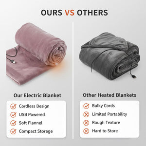This cordless electric blanket offers convenient heating through a USB connection. Designed for versatile use at home, in the office, or while travelling, it combines modern functionality with portable convenience. Available in multiple colours and suitable for various indoor settings.