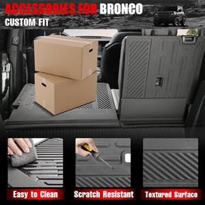 - [DESIGN]: Design to offer maximum protection for the Bronco 2-door/4-door second row seats when folded down or upright