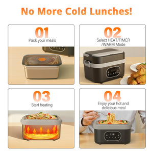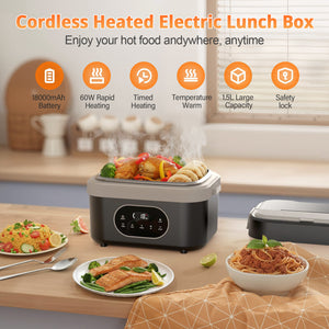 Offers 360° consistent heating powered by a built-in battery, helping meals warm evenly while maintaining moisture and flavor—suitable for office breaks, job sites, or outdoor dining.