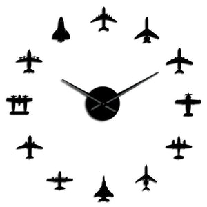 Flying Plane Fighter Jet Airplane Large Frameless DIY Wall Clock