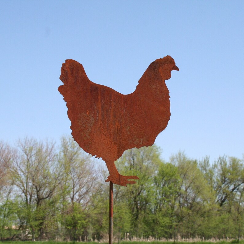 Rustic Metal Chicken Stake says Cluck It! When you've had enough, this sign says it all!This rustic chicken coop yard art is light-weight yet sturdy. Rusted chicken stake will add the perfect charm to your landscape or garden.
