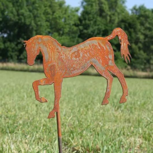 Rusted or Powder Coated Show Horse garden stake is perfect for your farmhouse landscape, but also fits great in a flower pot! Makes a great gift for any horse trainer, farrier, or breeder.