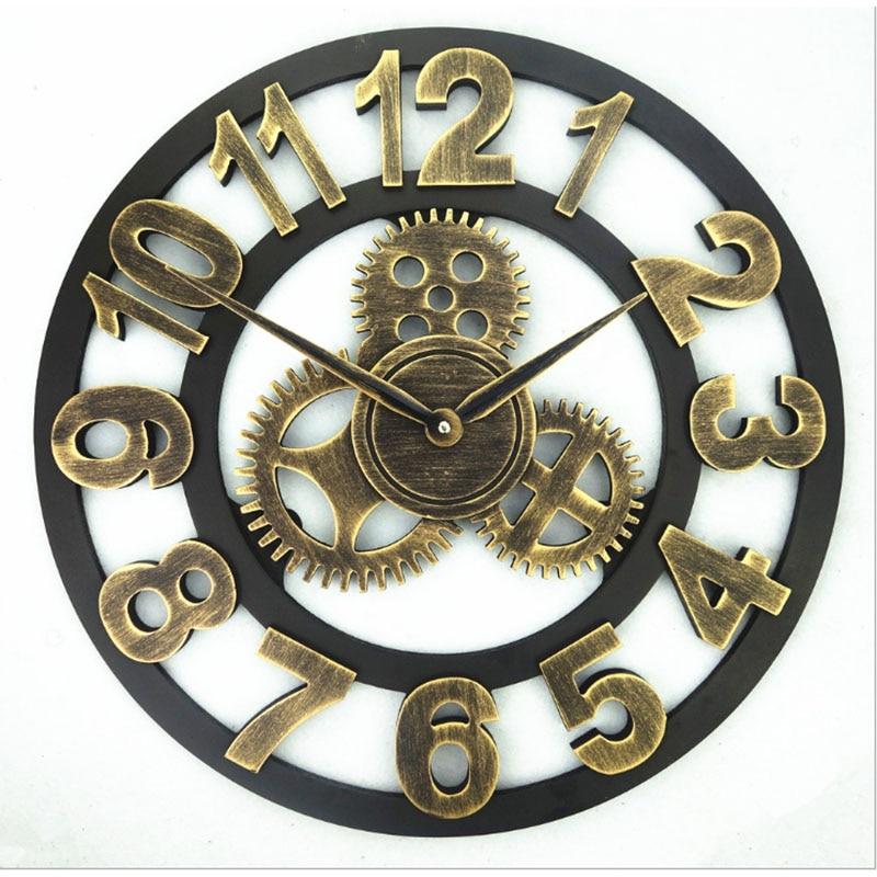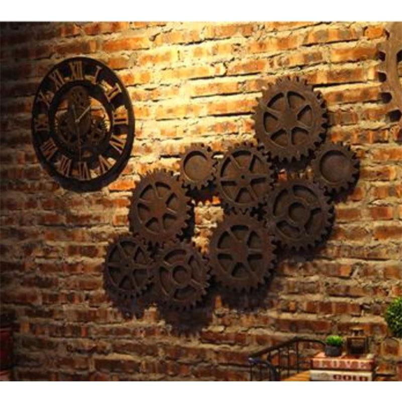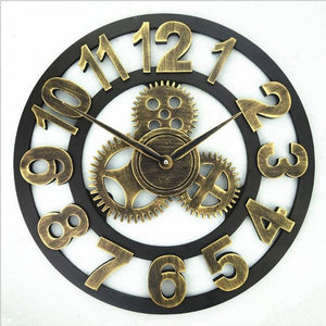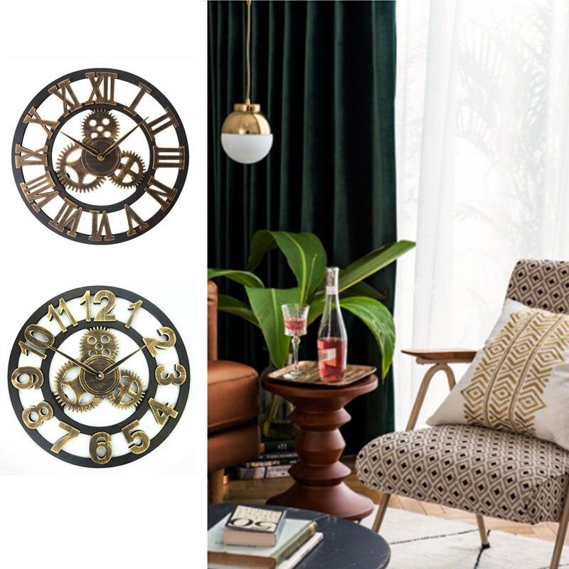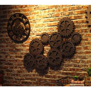 Steampunk Roman Gear Large Wood Wall Clock for Home Bar Cafe Decor