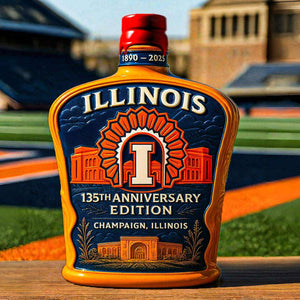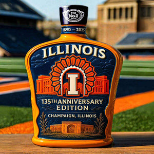 🧡💙🥃 Use this Illinois 135th Anniversary Whiskey Bottle (1890-2025) to celebrate the storied pride of Champaign and the legacy of the Illini.
