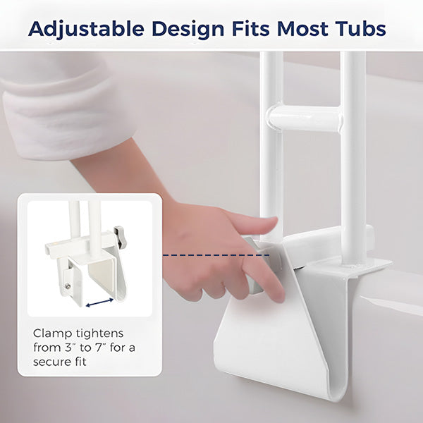 Adjustable Bathtub Safety Rail – Secure Tub Grab Bar for Seniors, Elderly Bath Support & Fall-Prevention Handle