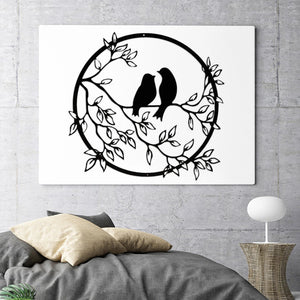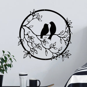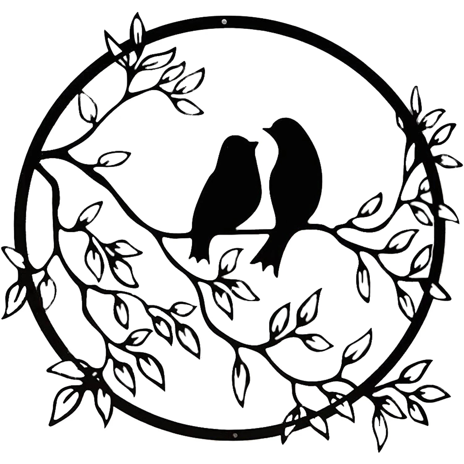 The exquisite design features two birds perched on tree branches within a circular frame, offering a charming and eye-catching aesthetic. The simple black color makes it versatile for modern, rustic, or minimalist décor, suitable for both indoor and outdoor spaces. With its easy installation and broad usability, this piece is perfect for creating an inviting focal point.