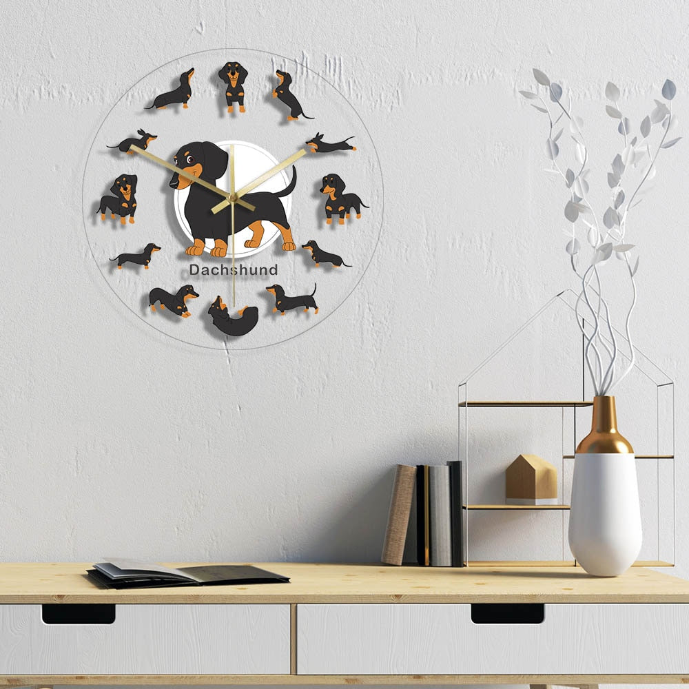 Cartoon Dachshund Wiener Dog Arcylic Wall Clock