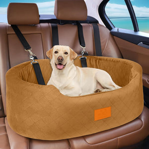 - Safety & Comfort: Dog seat is made with high-quality short plush fabric, providing warmth, comfort, and durability. Dog car seat medium dog interior is filled with high-density sponge for ultimate comfort during car rides. Dog travel bed non-slip bottom and sturdy safety belt or harness ensure your pet's safety and stability throughout the journey.