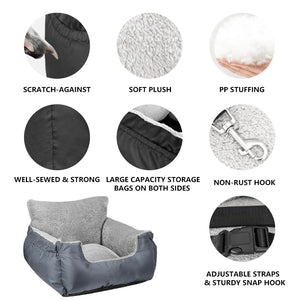 Dog Car Seat for Small Dogs with Storage Pockets and Adjustable Clip-On Leash Dog Booster Seats Bed