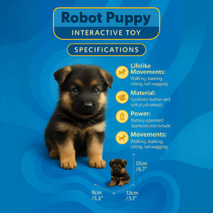 Built with integrated motion and sound features, the puppy can walk, sit, bark, and wag its tail when activated. These natural movements help create a more engaging play experience while remaining easy to operate for everyday use.