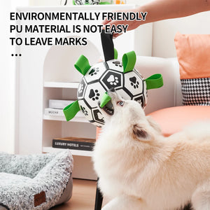 Guaranteed to thrill, the Splash Soccer Ball might look like a standard soccer ball, but it's built to withstand even the rowdiest play. Engineered with durable nylon straps and reinforced mesh for extra toughness, it’s nearly indestructible. Your dog will focus on the enticing straps while the ball remains perfectly whole, ensuring long-lasting fun. Our customers often express surprise at how well the Splash Soccer Ball holds up, lasting far beyond ordinary toys.