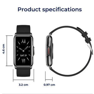 - Water Resistance: This product is suitable for shallow water activities such as swimming in pools or coastal areas. However, it should not be used for prolonged periods underwater. Avoid wearing the device in hot showers, hot springs, saunas, or any activities involving high water pressure, extreme temperatures, or high humidity. It is not intended for scuba diving or high-pressure water environments. After using it in ocean water, rinse the device with fresh water. Leather and metal straps are not designed for use during swimming or heavy sweating. For these activities, consider using alternative strap types. Please note that water resistance can diminish over time with regular wear and tear.