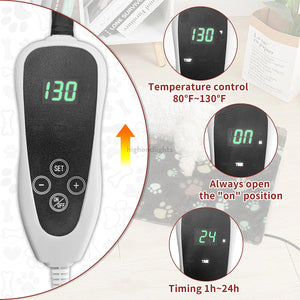 Heated Dog Pad with Adjustable Thermostat and Plush Washable Cover