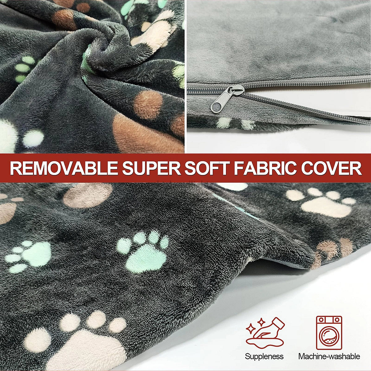 The soft fabric cover enhances comfort and can be removed for machine washing. Wipe the heating pad with a damp cloth when needed.