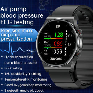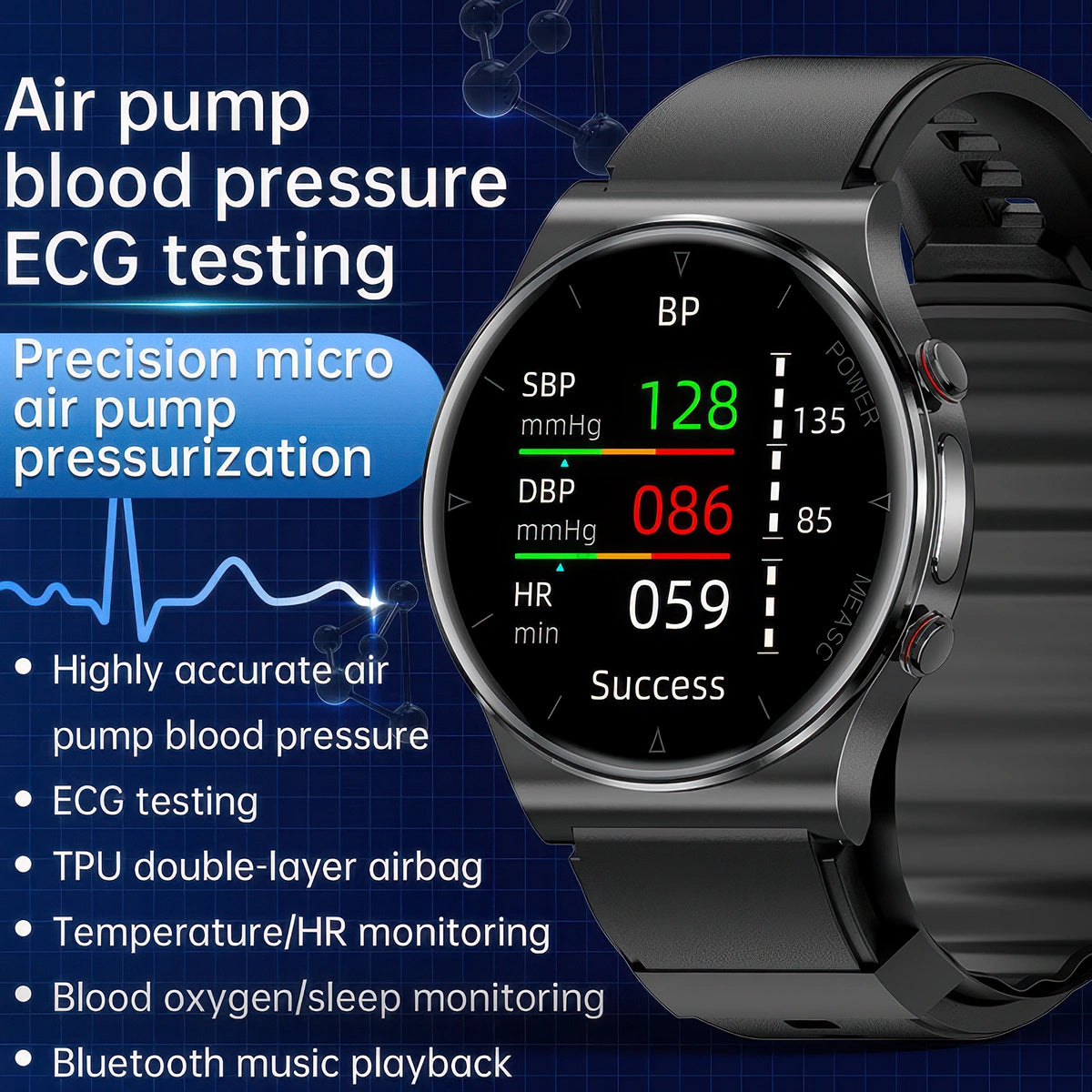 Features a built-in air pump structure along with support for activity data tracking, sleep data display, message alerts, Bluetooth music control, weather viewing, photo control, and step counting.