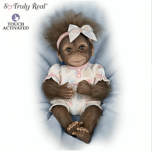 Straight from the jungle and into your arms, this lifelike monkey doll offers interactive sound features designed to enhance display and collectible appeal. Depending on how the doll is held, it can produce five different sounds, adding variety to the interaction. Hold the doll against your shoulder to hear gentle fussing and calming sounds. Cradle her on her right side to hear a soft babble, rest her on her left side for light chatter, lift her face to face for a calling sound, or place her on her tummy to hear a quiet coo.