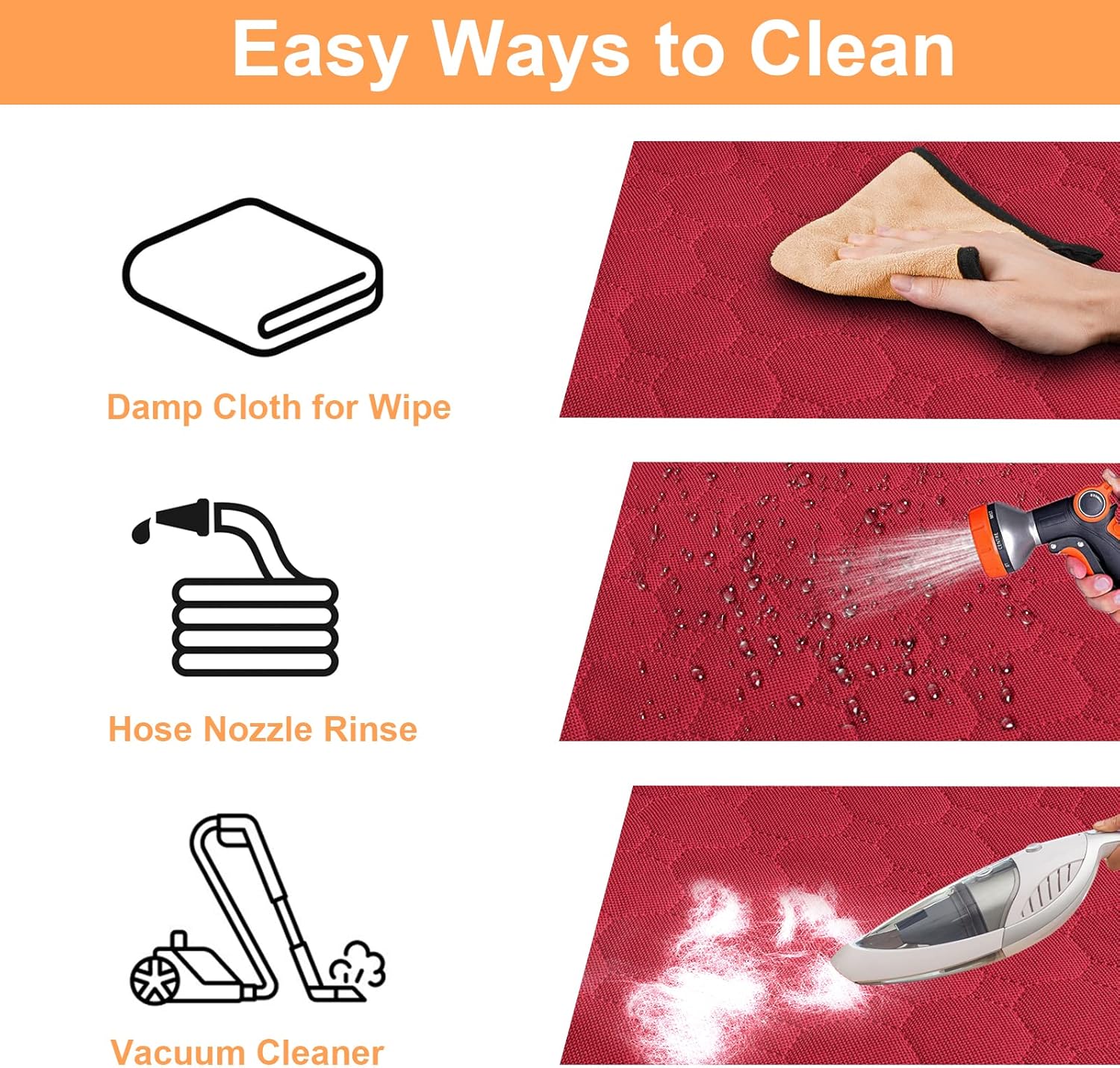 - Water Resistant: 600D polyester with a water-resistant coating which is a new material that can prevent your seats from getting stained or wet. Supply your pets with comfort while keeping your vehicle interior safe from scratches, fur, and urine. This car dog cover back seat is also excellent for protecting from damage caused by baby car seats. it can protect the back seat from food and juice spills