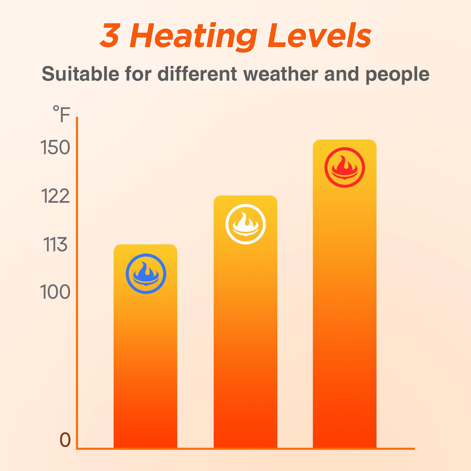 Easily switch between three temperature modes — high, medium, and low — to match your comfort. LED battery indicators clearly show remaining power (100%, 75%, 50%, 25%), so you always know when to recharge.
