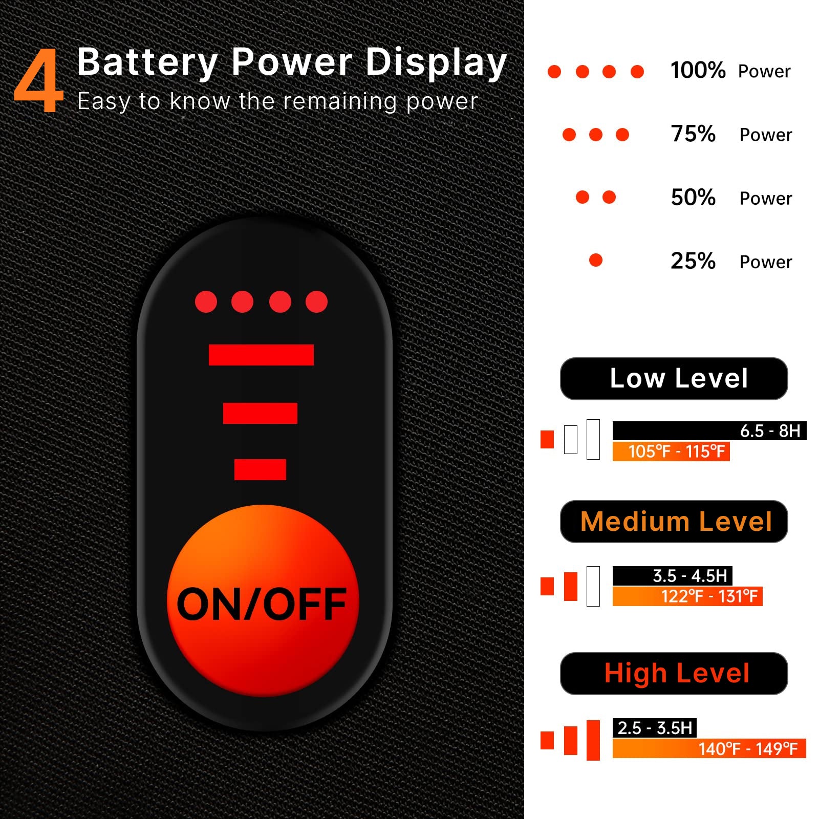 Features a 7.4V 22.2Wh battery system that provides steady warmth for long hours outdoors in cold environments.Touchscreen Functionality