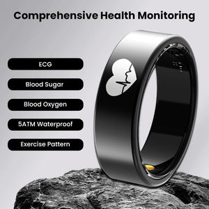 Smart Health Ring with Blood Glucose, ECG/EKG & Blood Pressure Tracking + AI Analysis