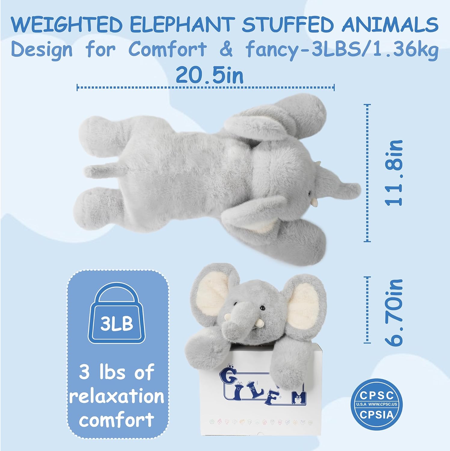 Weighted Stuffed Animals Elephant - 25" Big Stuffed Animal Toy Pillow for Kids & Adults
