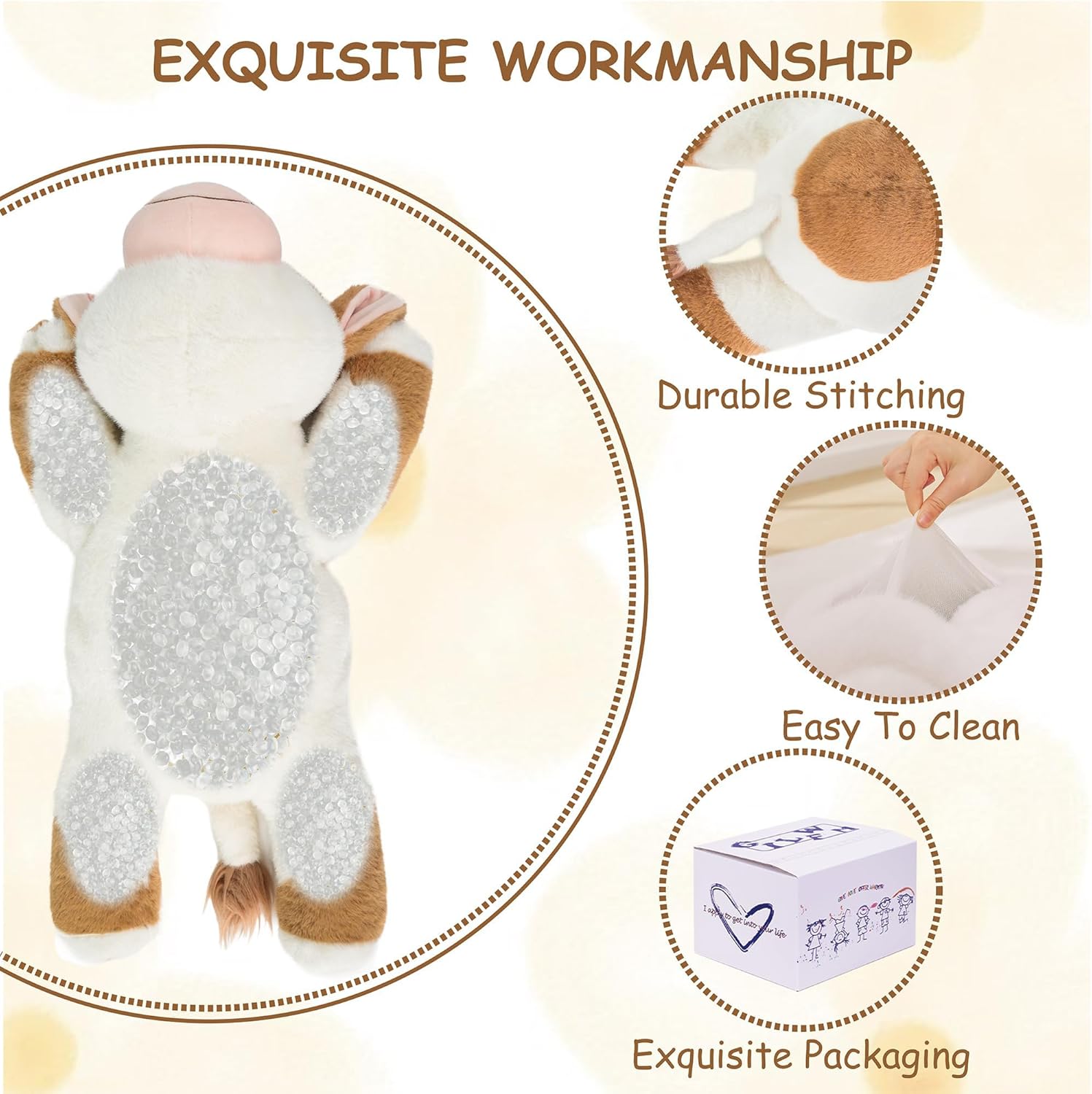 - Comforting weighted feel: Filled with glass beads distributed in the belly and paws, creating a soft, hug-like sensation.