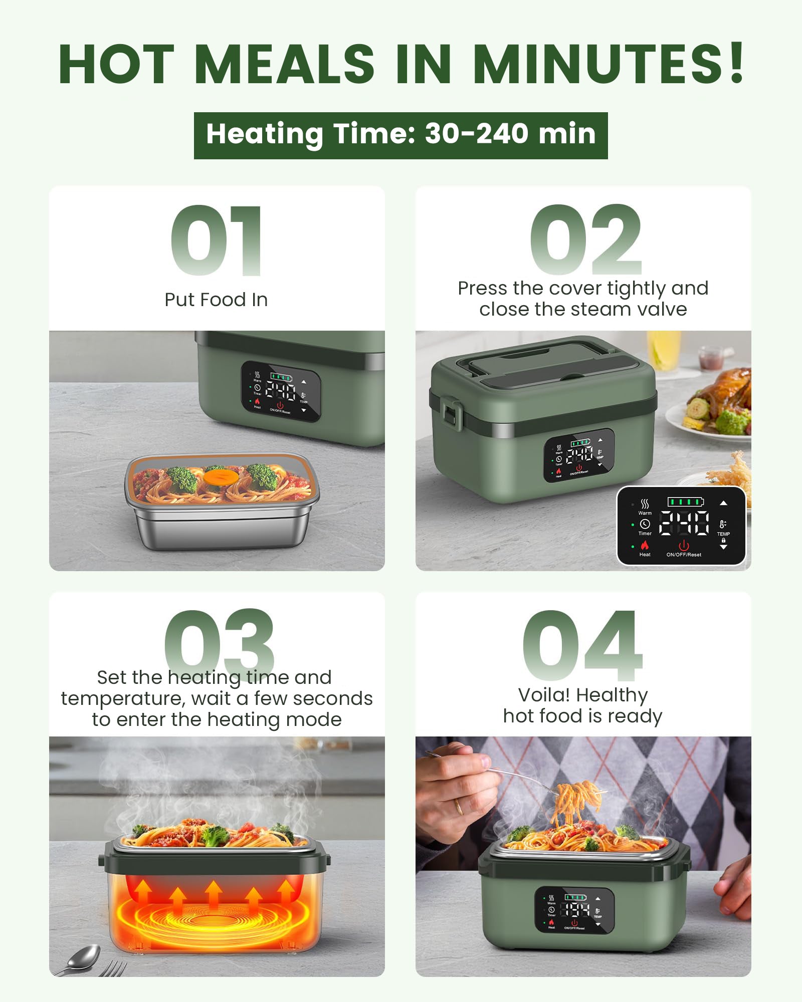 Ideal for office workers, drivers, and travelers who need a portable way to enjoy warm, fresh meals during work or outdoor activities.