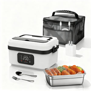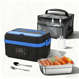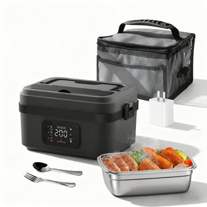 This cordless electric lunch box runs on a built-in 16000mAh rechargeable battery and comes with a 1L stainless steel container and an insulated carrying bag. It’s designed for commuters, office workers, and anyone who needs a hot meal on the go. With a built-in timer and adjustable heating settings, it lets you warm your food quickly and conveniently wherever you are.