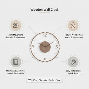 Wooden Wall Clock - Minimalist Design - Silent Movement